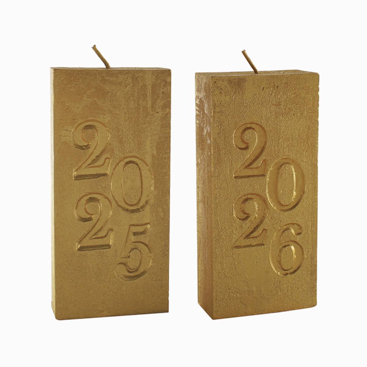 Mientras las horas del 2025 se desvanecen, celebra el año que dejamos atrás y da la bienvenida a las infinitas posibilidades que nos trae el 2026. En cada lado de la vela están grabados los años 2025 y 2026.