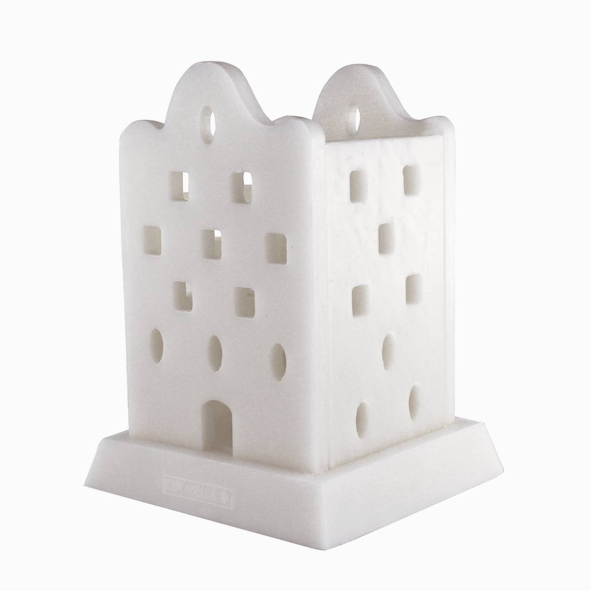 Llar es una colección navideña formada por tres casitas blancas inspiradas en la arquitectura modernista de Barcelona. Como postales de una ciudad que reposa en una noche invernal, se alzan sobre una base de cera, delicadas y serenas, dispuestas a encender la calidez del hogar. En el interior, un vaso de cristal perfumado ilumina suavemente cada ventana, como si en su interior latiera la propia esencia de la Navidad.